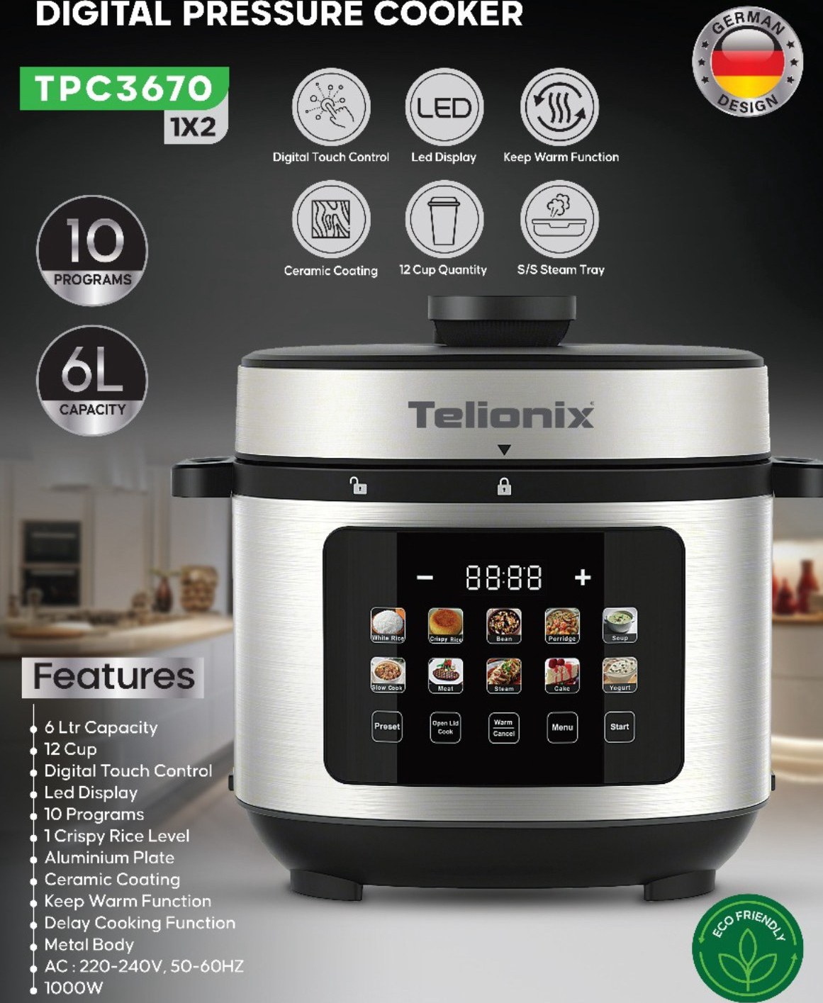 زودپز پلوپز برقی ۱۰ کاره دیجیتال تلیونیکس مدل TPC3670(ارسال رایگان )