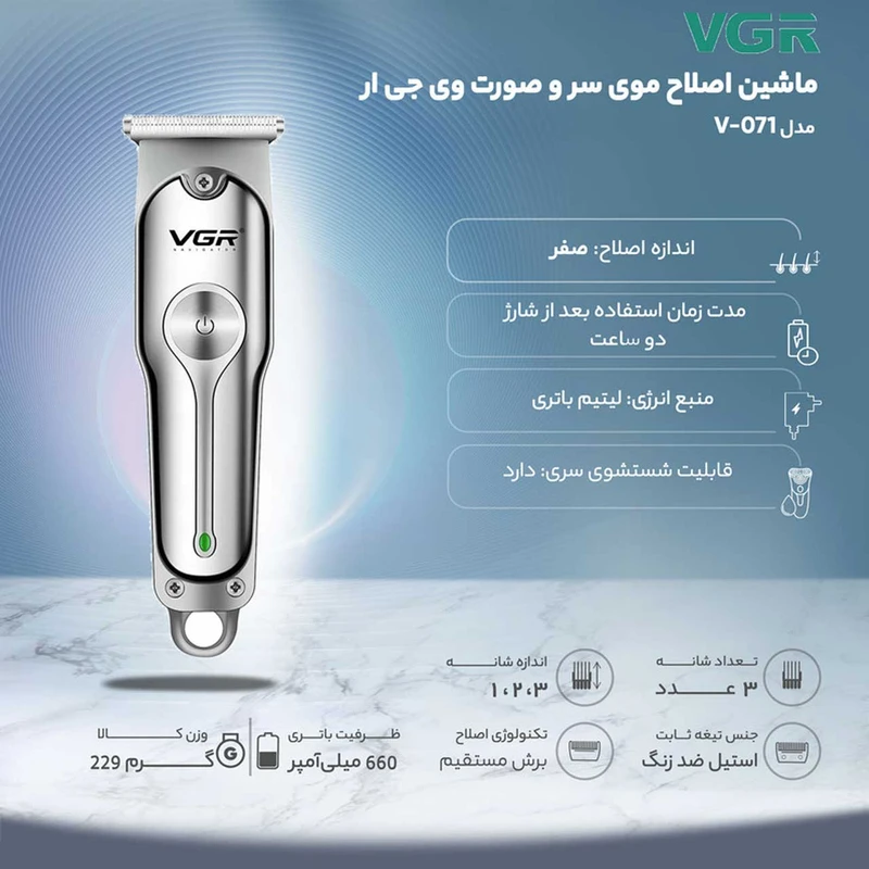 ماشین اصلاح وی جی آر مدل V-254 با تیغه تیتانیوم و برش مستقیم