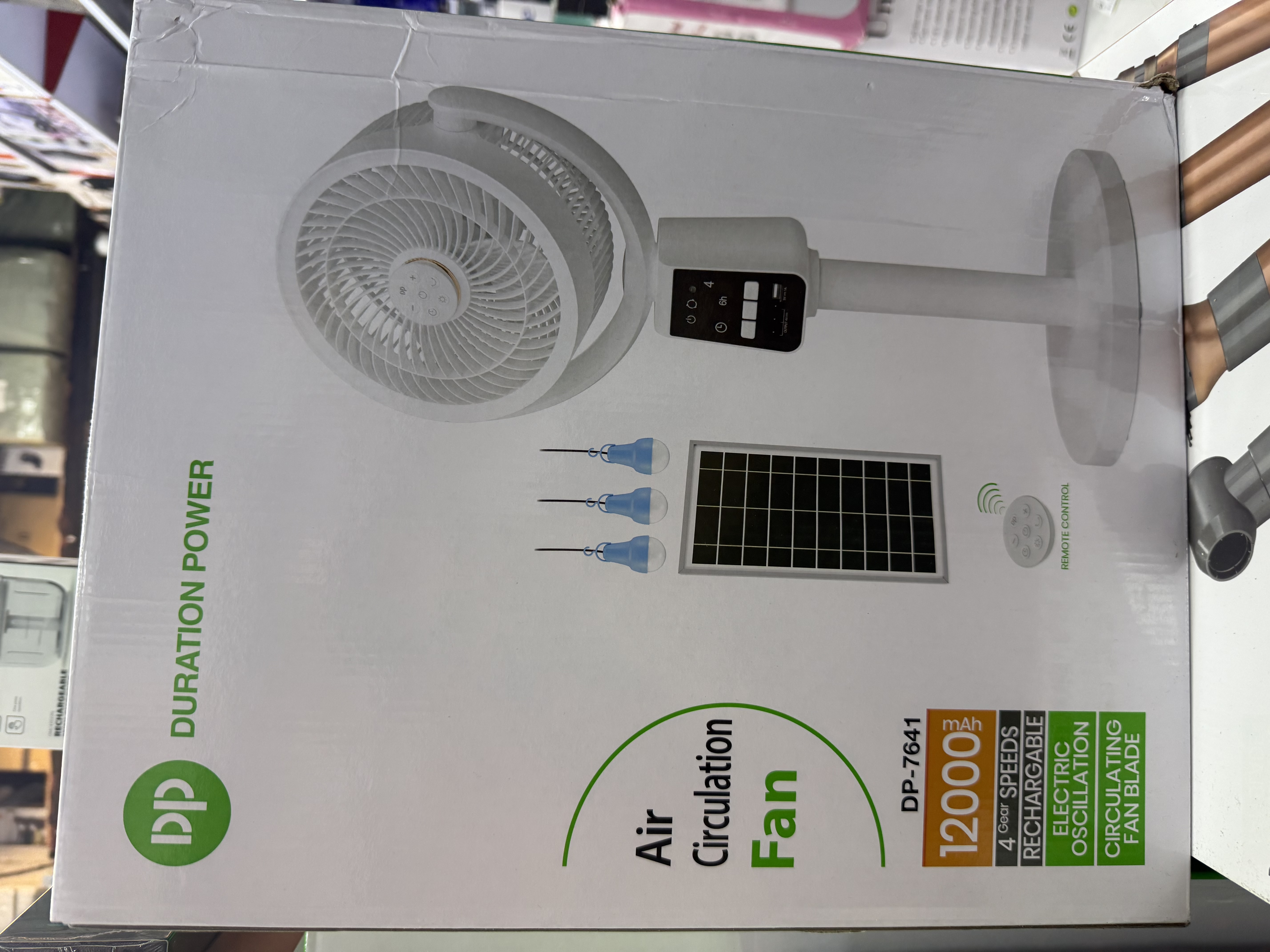 , با برق 5 ولت یا باتری داخلی عرضه می شود, جعبه شامل پنل خورشیدی و 3 لامپ اضطراری LED است, دارای 3 عملکرد زمان بندی 3/6/9 ساعته, سایز: 7 اینچ, قابل استفاده به صورت ایستاده یا رومیزی،و ارتفاع قابل تنظیم, کنترل از راه دور مغناطیسی،استفاده راحت تر, مجهز به خروجی 3*4 ولت DC و 1*5 ولت USB
