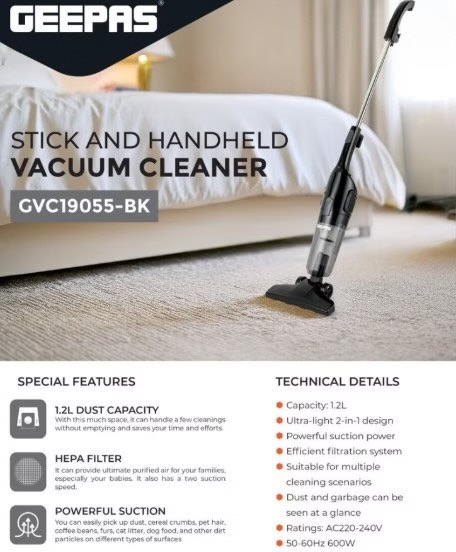 جارو برقی جیپاس مدل GVC19055 با قدرت مکش ۶۰۰ وات