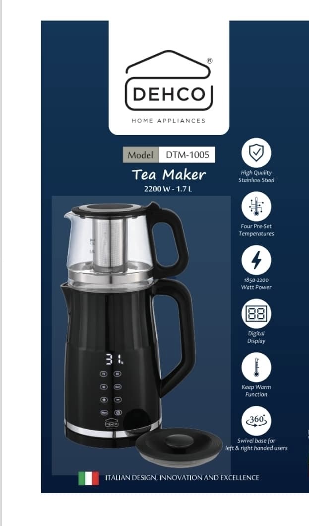 چای ساز دسینی مدل 7007 ظرفیت ۲ لیتر با کتری شیشهای